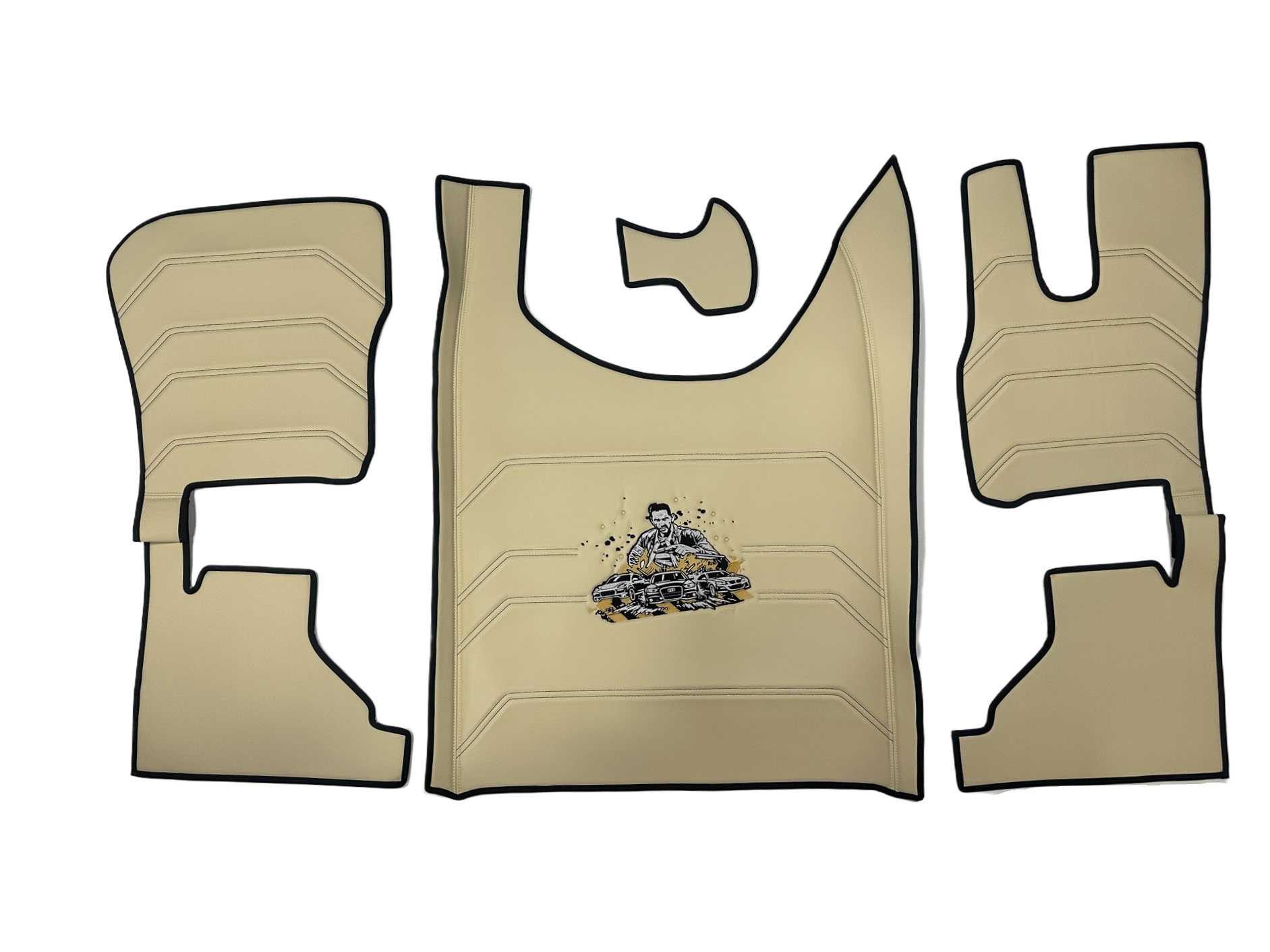 Nie tylko haft komputerowy , ale również szycie wielkoformatowe znajdą Państwo w naszej ofercie. Posiadamy maszynę z polem szycia 3 m / 3 m. Wykonujemy  różnego typu przeszycia na materiałach pod dywany do samochodów ciężarowych , wezgłowia do łóżek , pokrowców na materace itp.