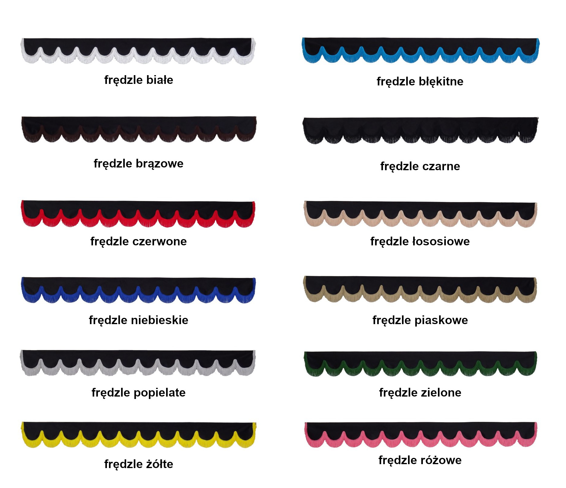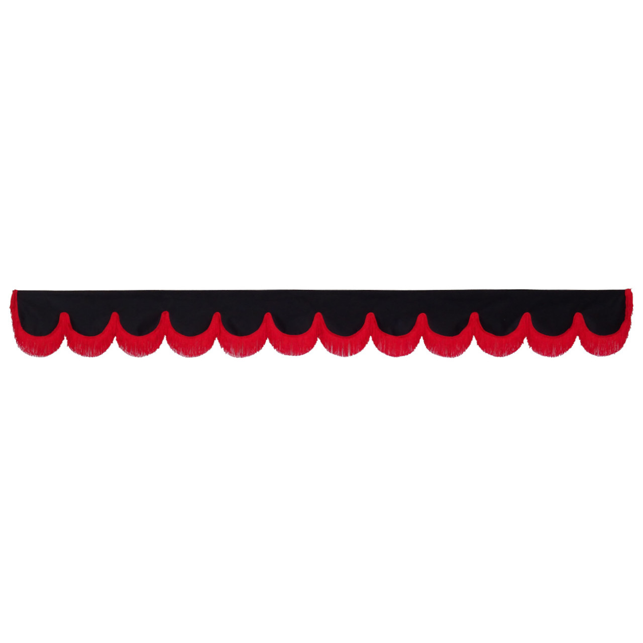 Wymiar blendy to 226 cm / 15 cm plus 8 cm frędzli. Montaż jest na rzep który jest dołączony do zestawu.