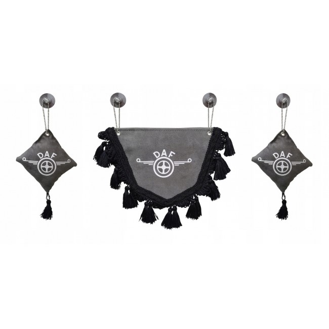 Proporczyk + poduszki ozdobne TIR na przyssawki. Wysoka jakość wykonania. Obszycie frędzle. Na proporczyku i poduszkach można wykonać logo.