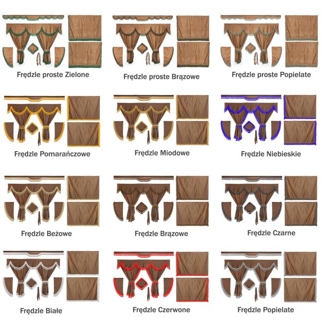 ZASŁONY FIRANKI do kabin TIR komplet BRĄZOWY ZESTAW